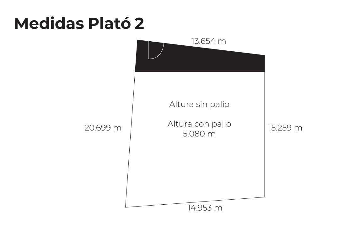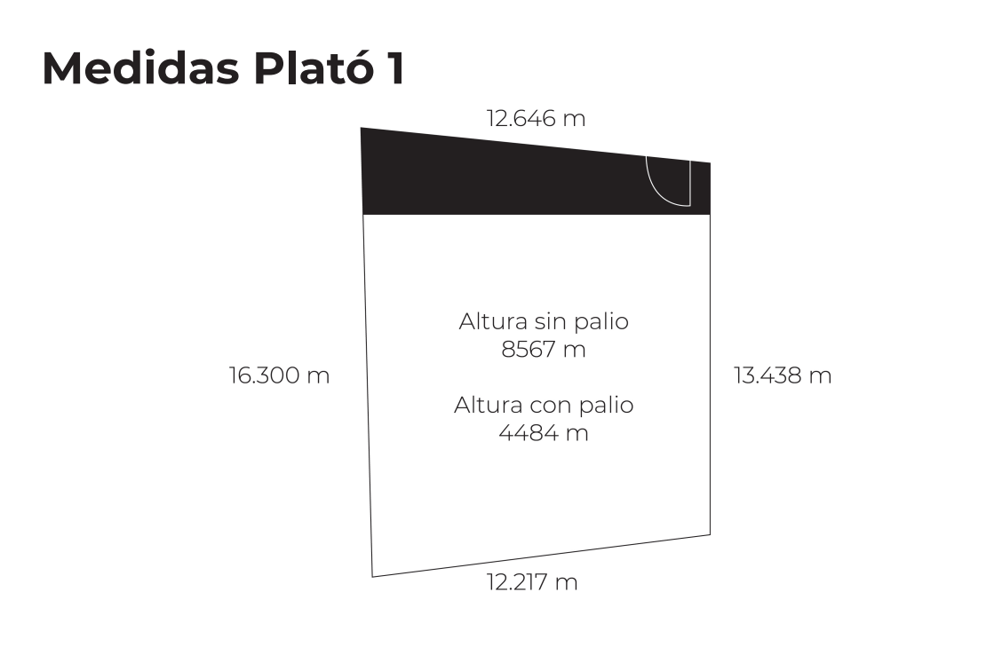 Nuestro versátil Plato 1 ofrece una amplia área de 210 metros cuadrados, listo para adaptarse a tus necesidades creativas.