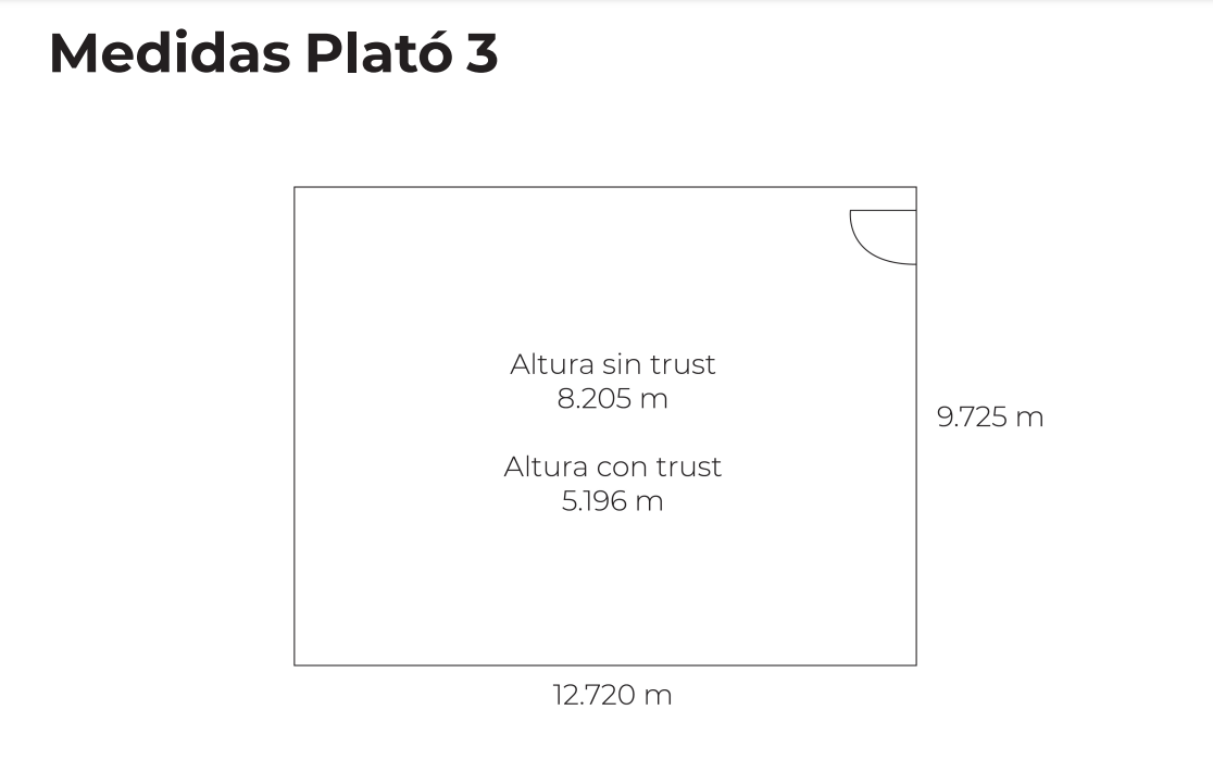 Equipado con un ciclorama en infinito, este espacio proporciona un fondo limpio y sin interrupciones para tus producciones. Además, gracias a un innovador sistema de rieles, el ciclorama puede correrse para revelar un croma, permitiéndote crear espacios virtuales expansivos para tus efectos visuales. El tamaño de este plató también es ideal para escenas que requieran la entrada de vehículos o equipos de gran tamaño.